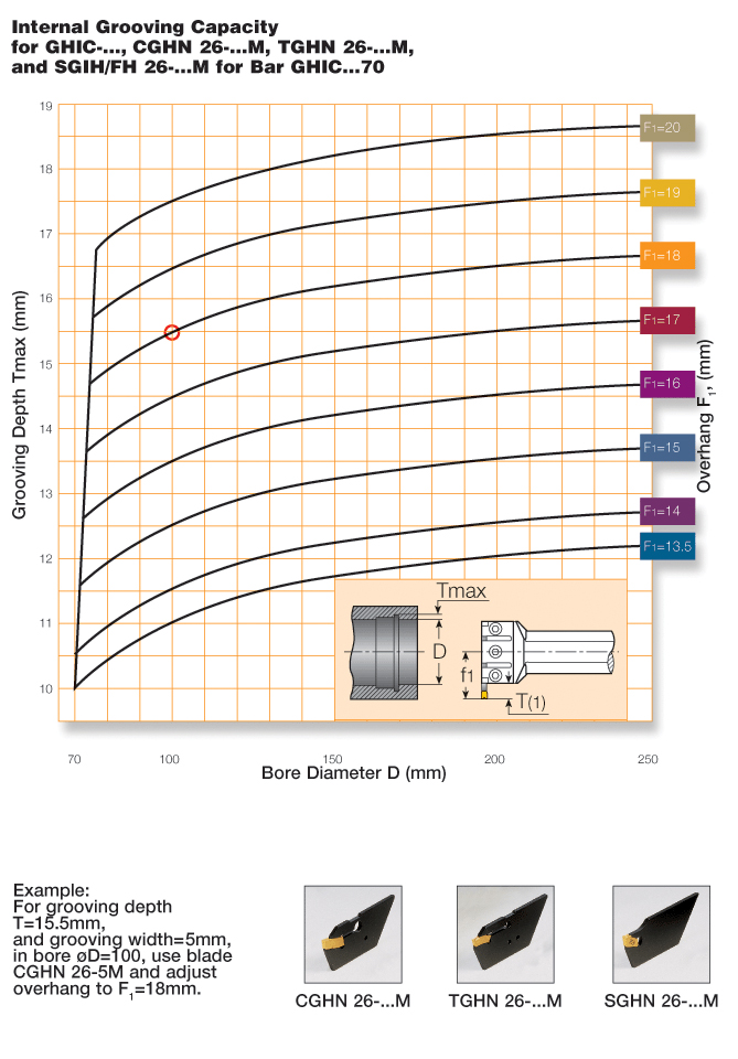 Observações | Grooving depth (CDX) varies in conformance with blade's overhang (WFN-WFX and OHN-OHX) and depends on the bore diameter (D) For grooving capacity, click More Info CGHN 26...-M can be modified from external double-sided CGHN blades When TIP inserts are used, the seat needs to be modified to ensure clearance When using GIVR/L inserts, tool holder's seat needs to be modified | Nome da marca | Iscar |